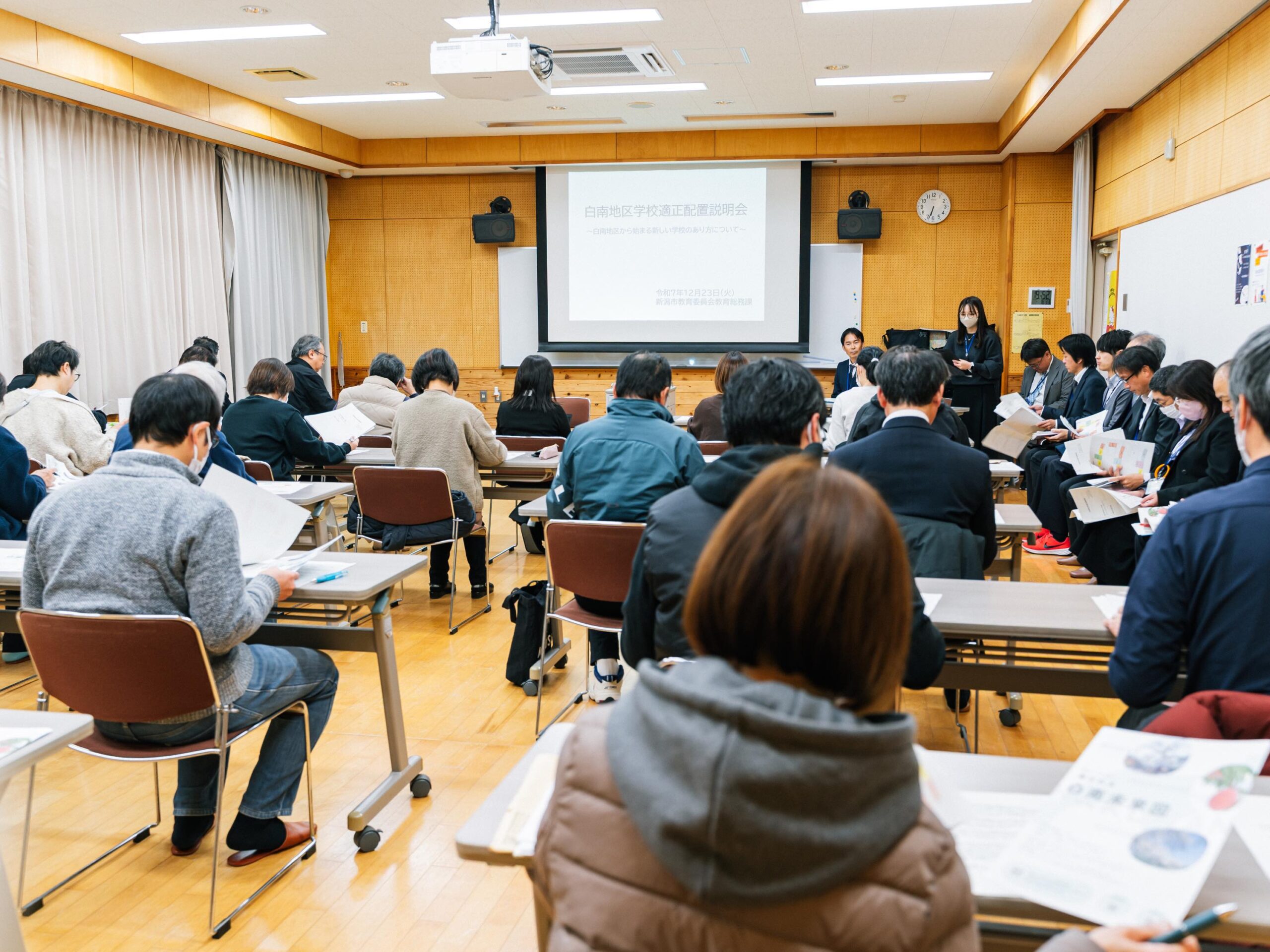 令和7年より、新潟市教育委員会・新潟市の関係各課・白南地区コミ協連絡会を中心に、新しい学校像や公共施設の再編について検討する「白南地区学校適正配置検討会」が行われています。
